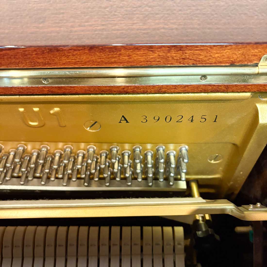 Yamaha U1 full-size upright piano in polished walnut.